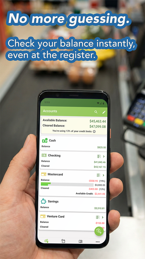 Track spending, schedule bills, and sync your budget across every device. Your digital register is always open. Yes, even at the checkout counter.