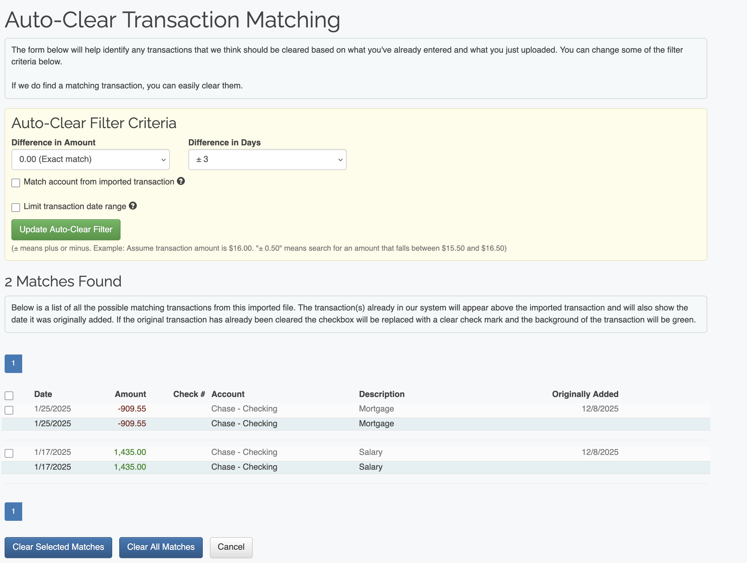 Check for duplicate transactions when importing |