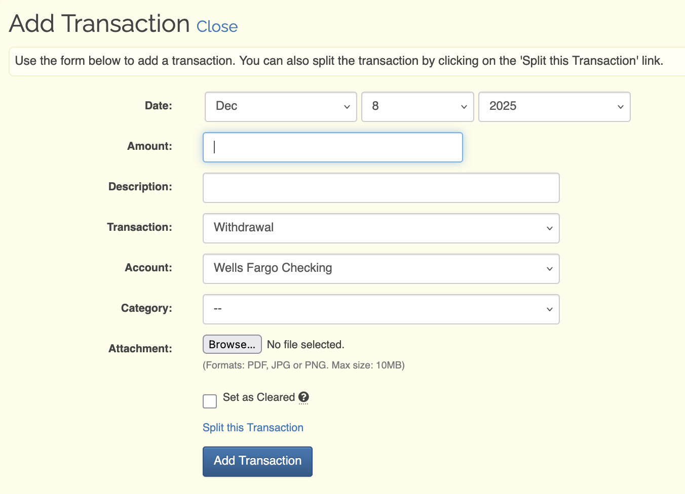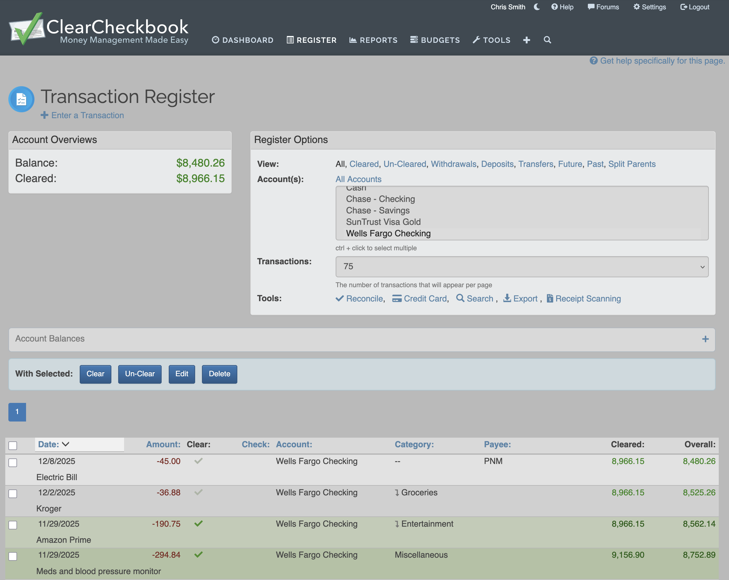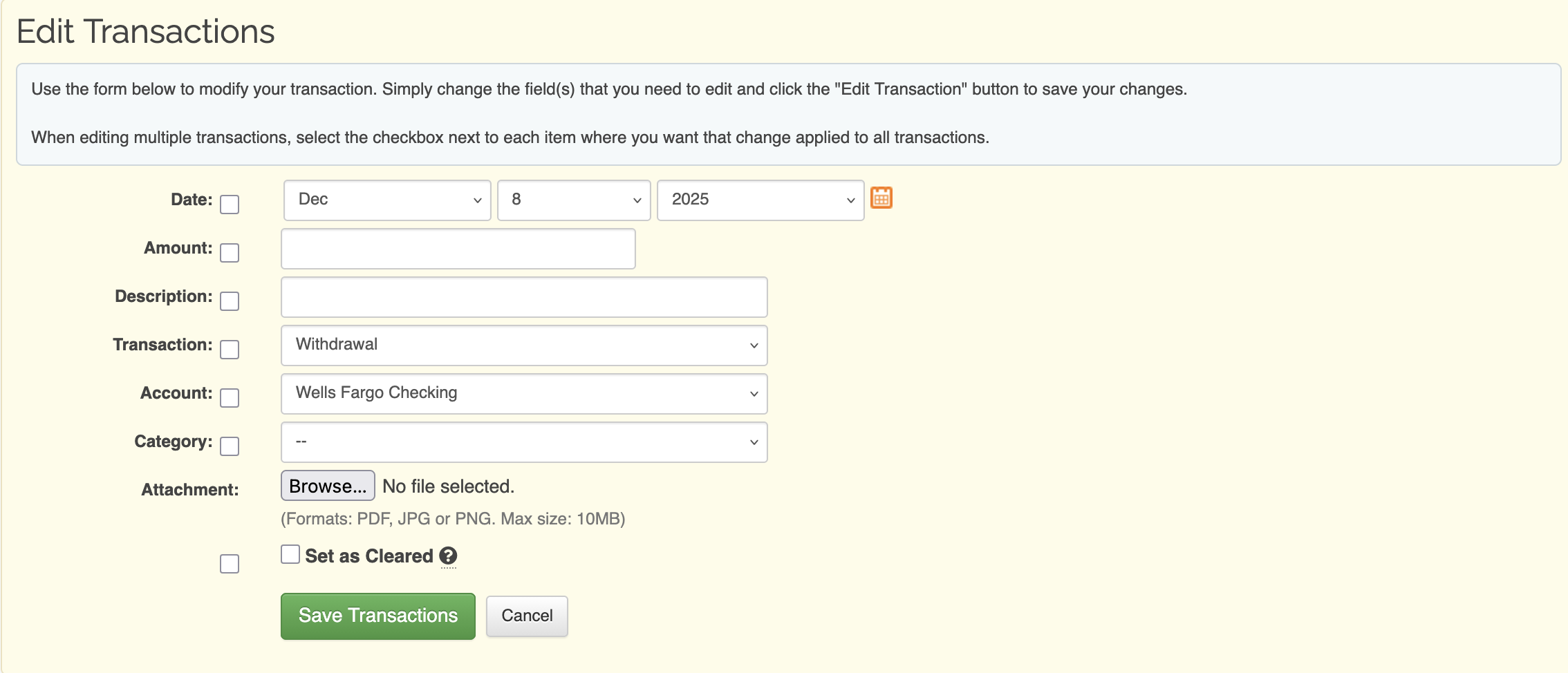 Lock cleared transactions from being edited or deleted |